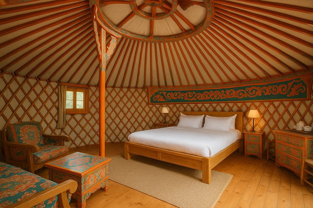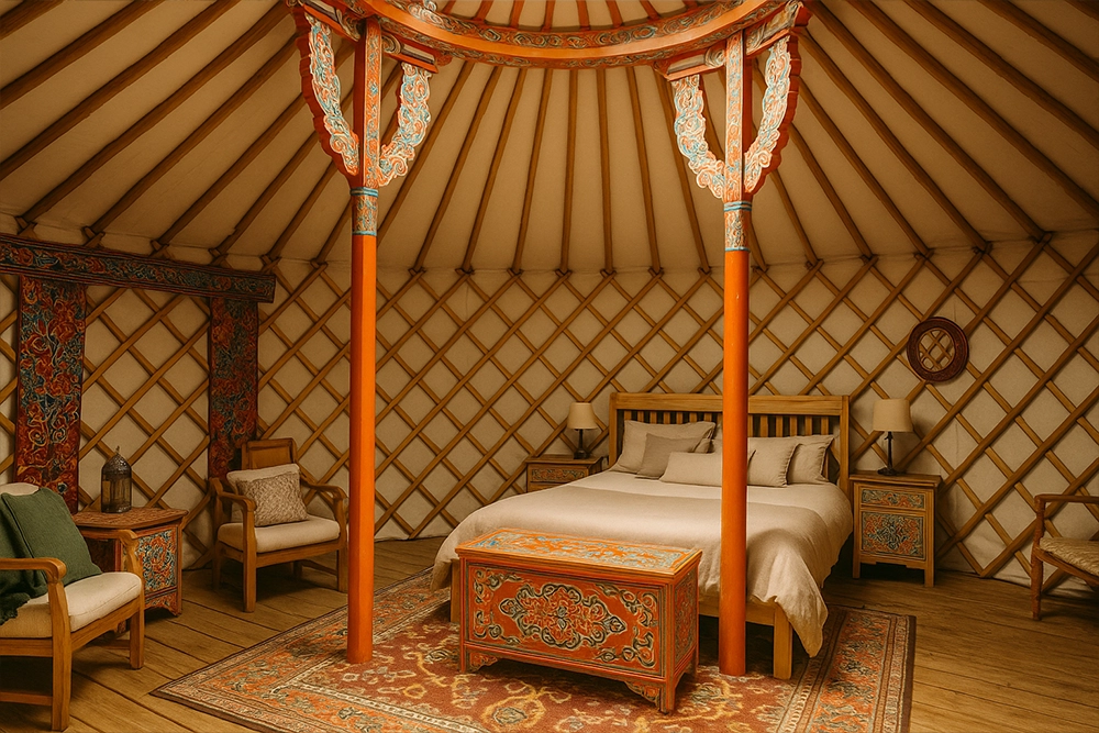 Inspirées de l’art de vivre mongol, nos yourtes traditionnelles revisitées vous invitent à une expérience authentique et prestigieuse.